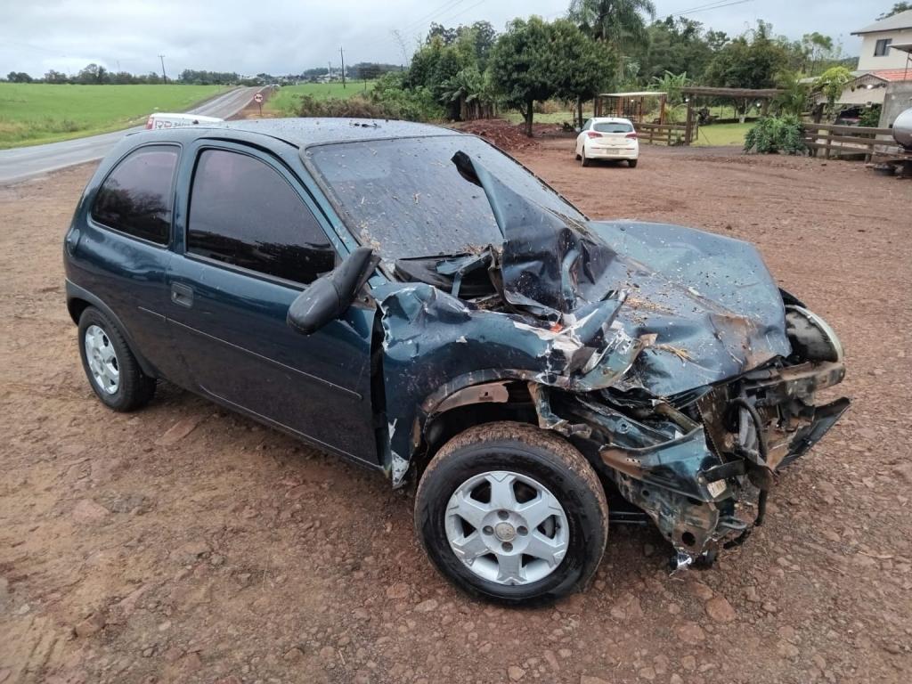 Um acidente na manhã desta quarta-feira (10) entre Planalto e São Valério, envolveu um CM/Corsa, uma motocicleta e um trator que tracionava uma carreta.