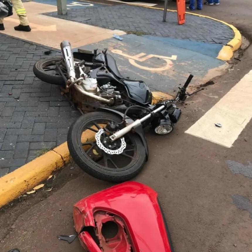 A colisão envolveu uma motocicleta Honda CG 150 , ocupada por duas pessoas e um Sandero, veículos com placa Mercosul.