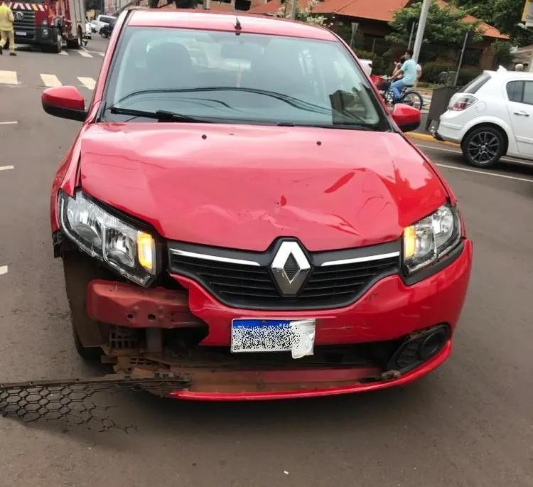 A moto trafegava pela Tiradentes e seu condutor invadiu a via preferencial, ocasionando o choque com o veiculo Sandero que seguia pela Rua Rio de Janeiro.