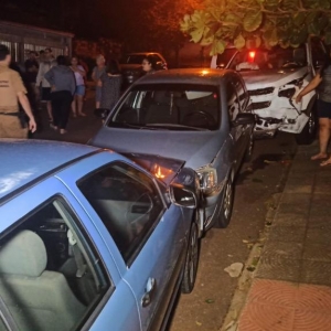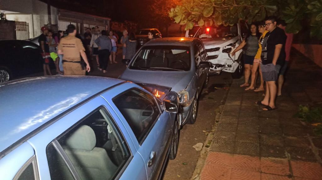 Um acidente envolvendo cinco carros aconteceu por volta das 21h55 desta sexta-feira no cruzamento da rua Itajubá com rua Ipiranga na Vila Operária em Toledo.