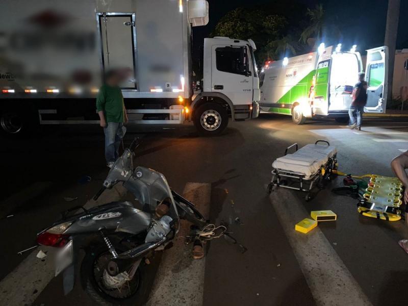 Um acidente foi registrado por volta das 18h30min desta quinta-feira (16), no centro de Mercedes. A colisão envolveu uma moto e um caminhão.