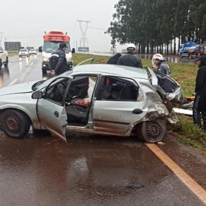 Segundo informações obtidas com o condutor do Celta, ele disse que seguia no sentido a Toledo e quando realizava uma ultrapassagem de uma carreta tanque a mesma o fechou obrigando ele desviar para a esquerda momento que o seu veículo rodou na pista atravessando o canteiro central e atingindo a lateral de uma carreta que seguia no sentido contrário e logo atrás da carreta seguia a motociclista que foi colhida em cheio pelo Celta.