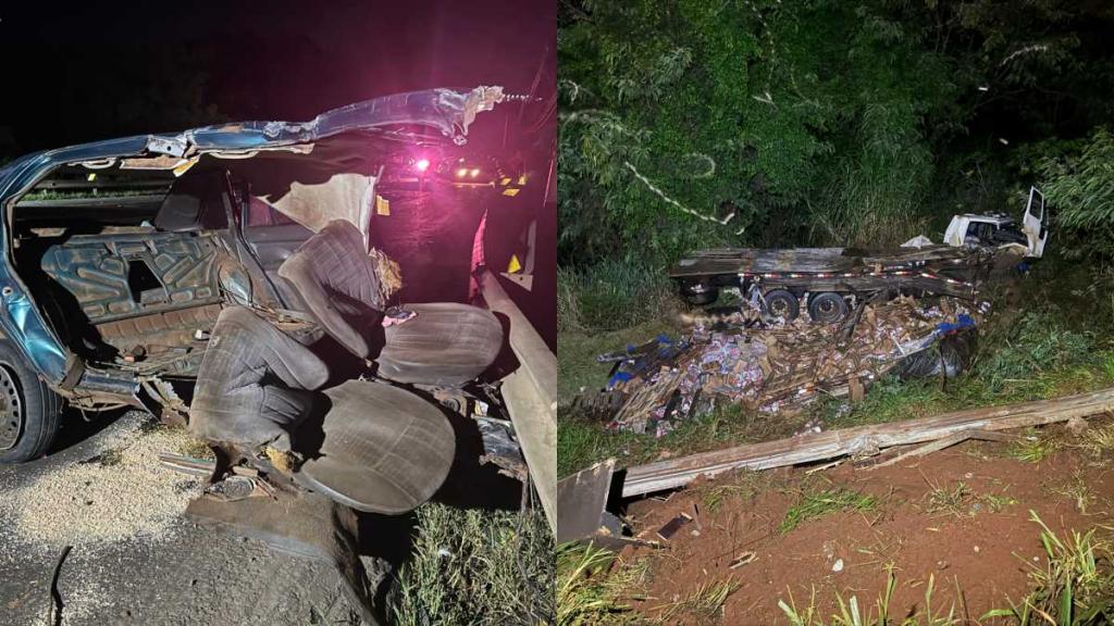 De acordo com a apuração da RICtv Londrina, o carro – ocupado por quatro pessoas – invadiu a contramão e atingiu em cheio o caminhão. O automóvel ficou destruído e apenas um dos passageiros sobreviveu, com ferimentos graves, e foi encaminhado ao Hospital Norte Paranaense. O motorista do caminhão, que também se feriu gravemente após a carreta cair em um barranco, foi levado ao mesmo hospital.