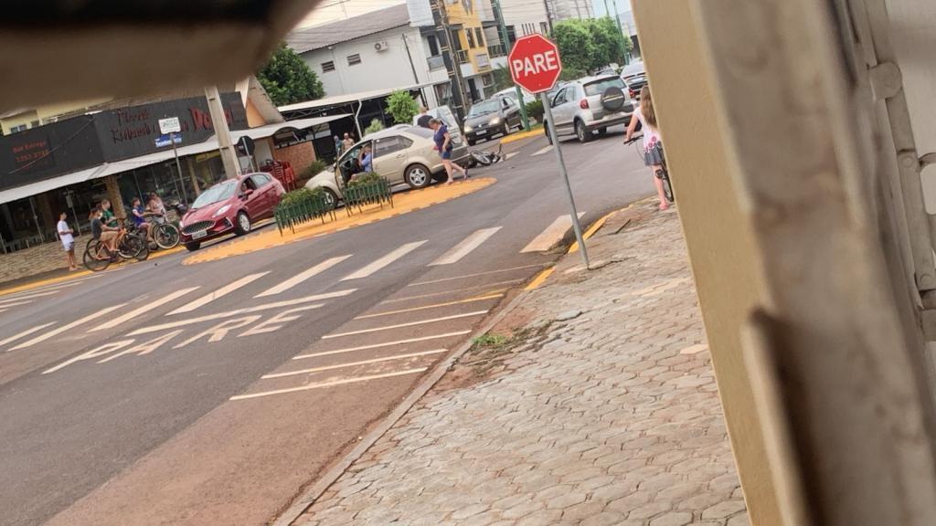 Um acidente envolvendo uma moto e uma carro aconteceu na rotatória da Avenida Santo Cristo com a Avenida Tucunduva, esquina do Restaurante Dalla na tarde desta sexta-feira.
