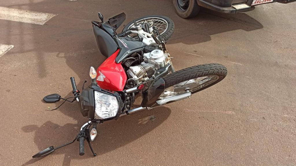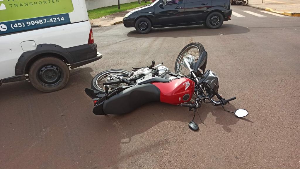 A moto Honda CG 160 cilindrada 0 Km sem placas conduzida por um jovem de de 22 anos que tinha na garupa um rapaz também de 22 anos se envolveu em uma colisão com um Fiat Strada com placas Mercosul no cruzamento da rua Crissiumal com rua Augusto Formigueri próximo ao lago municipal de Toledo na tarde desta segunda-feira (11).