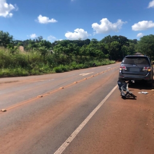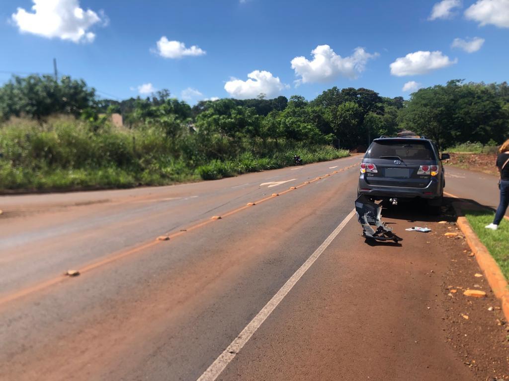 A colisão envolveu uma motocicleta Honda CG e um veículo Toyota - Hilux SW4. Com o impacto da colisão o condutor da motocicleta, um jovem de 27 anos, morador em Quatro Pontes, resultou com ferimentos principalmente nas pernas.