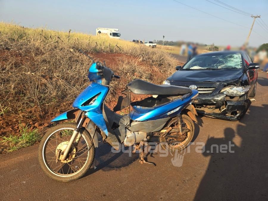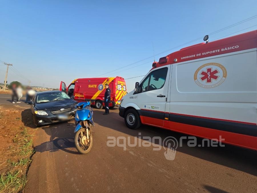 Um grave acidente de trânsito envolvendo carro e motocicleta foi registrado na manhã desta quarta-feira (21), em Marechal Cândido Rondon. Pelo menos uma pessoa ficou em estado gravíssimo. A colisão aconteceu no trevo do distrito de Margarida.