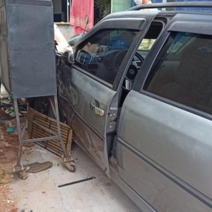 De acordo com informações, o acidente ocorreu quando o Ford Ka trafegava pela via e a Parati, conduzida por um homem de 65 anos, saía do acostamento e foi atingida pelo Fiesta. Após a colisão, a Parati avançou sobre a calçada, bateu no portão de uma residência e danificou uma churrasqueira de latão, parando parcialmente dentro do terreno.
