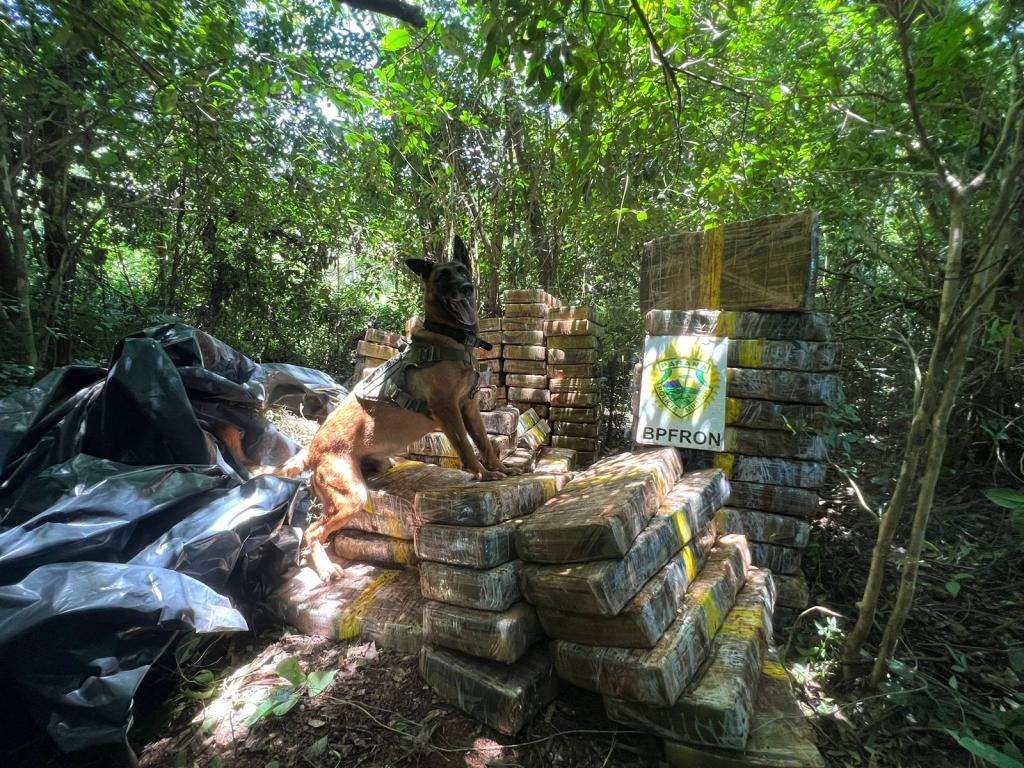 Duas ações realizadas em Santa Helena resultaram na apreensão de mais de cinco toneladas de maconha nesta quarta-feira (03). Em uma primeira ocorrência, equipes do BPFron localizaram cerca de 1,5 tonelada da droga escondida em uma área de mata após buscas com apoio de cão de faro.