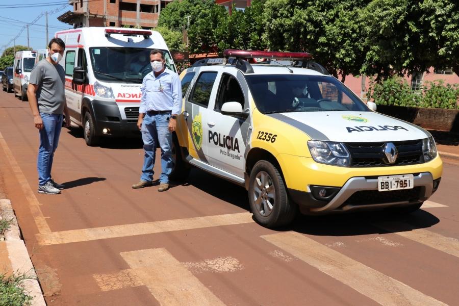 Desde 13 horas desta segunda-feira (23), um veículo da Polícia Militar, carro de som e três ambulâncias da Secretaria de Saúde percorrem todo município.