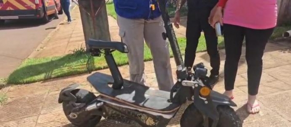 Um adolescente de 14 anos ficou ferido após sofrer uma queda enquanto conduzia um patinete elétrico na rua Vinícius de Moraes, no bairro Jardim Pancera, em Toledo, no início da tarde desta terça-feira (23).