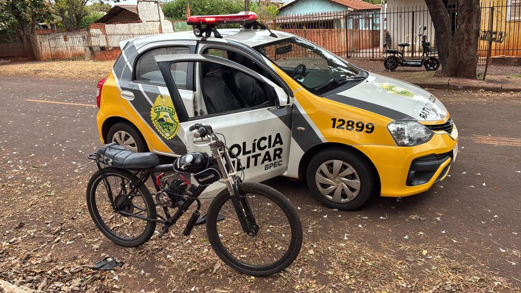 No início da tarde desta quinta-feira (04), a equipe da Patrulha Escolar de Palotina apreendeu uma bicicleta motorizada após um menor de idade desobedecer ordem de parada.