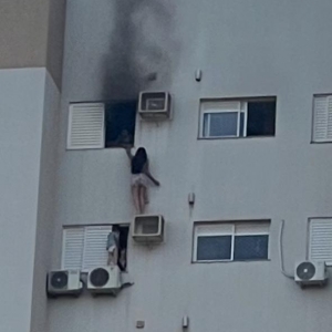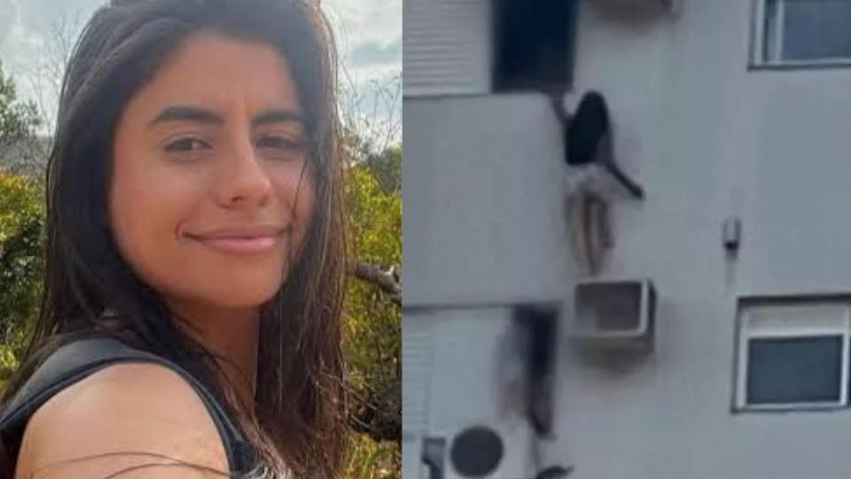 A imagem angustiante mostra Juliane apoiada sobre o ar-condicionado no 13º andar do Edifício João Batista Cunha, em Cascavel.
