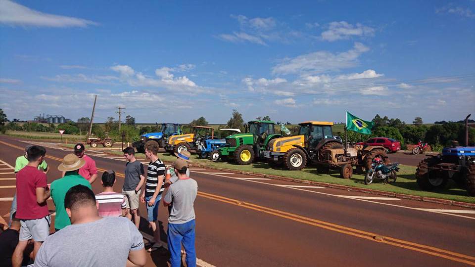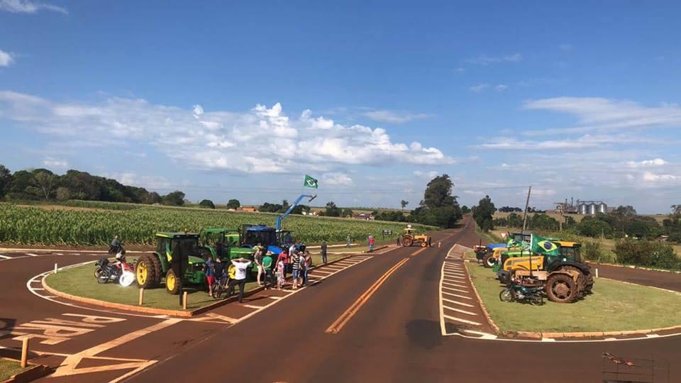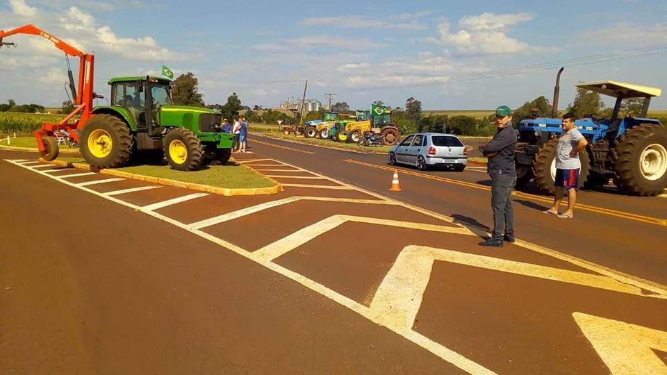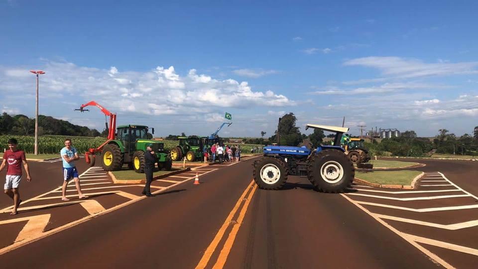 Um grupo de agricultores de Pérola Independente, distrito de Maripá também demonstrou o apoio na paralização dos caminhoneiros que entrou neste sábado (26) no 6º dia, colocando suas máquinas na pista, os tratores estão no trevo que dá acesso ao distrito na PR 182.