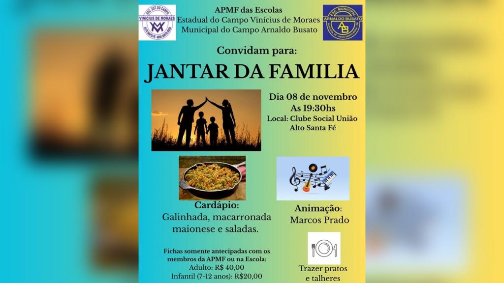 Quem ainda não garantiu a ficha para o tradicional Jantar da Família, ainda está em tempo para participar deste evento especial, que acontece neste sábado, dia 8 de novembro, no Clube Social União, em Alto Santa Fé, a partir das 19h30.