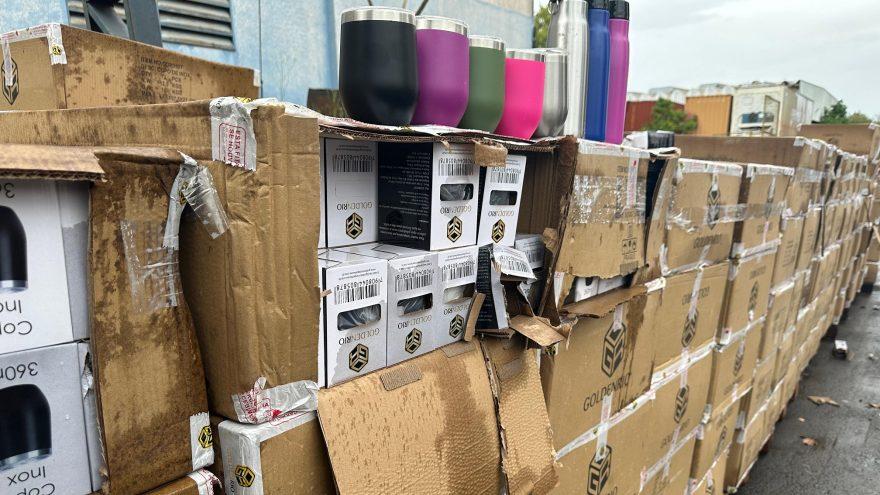A Alfândega da Receita Federal em Foz do Iguaçu está realizando a destruição de copos e garrafas térmicas que são imitações de marcas internacionais famosas, produzidos na China.