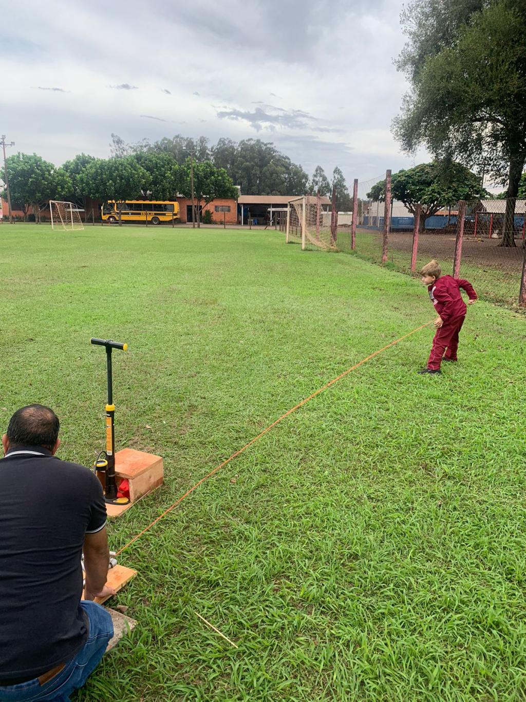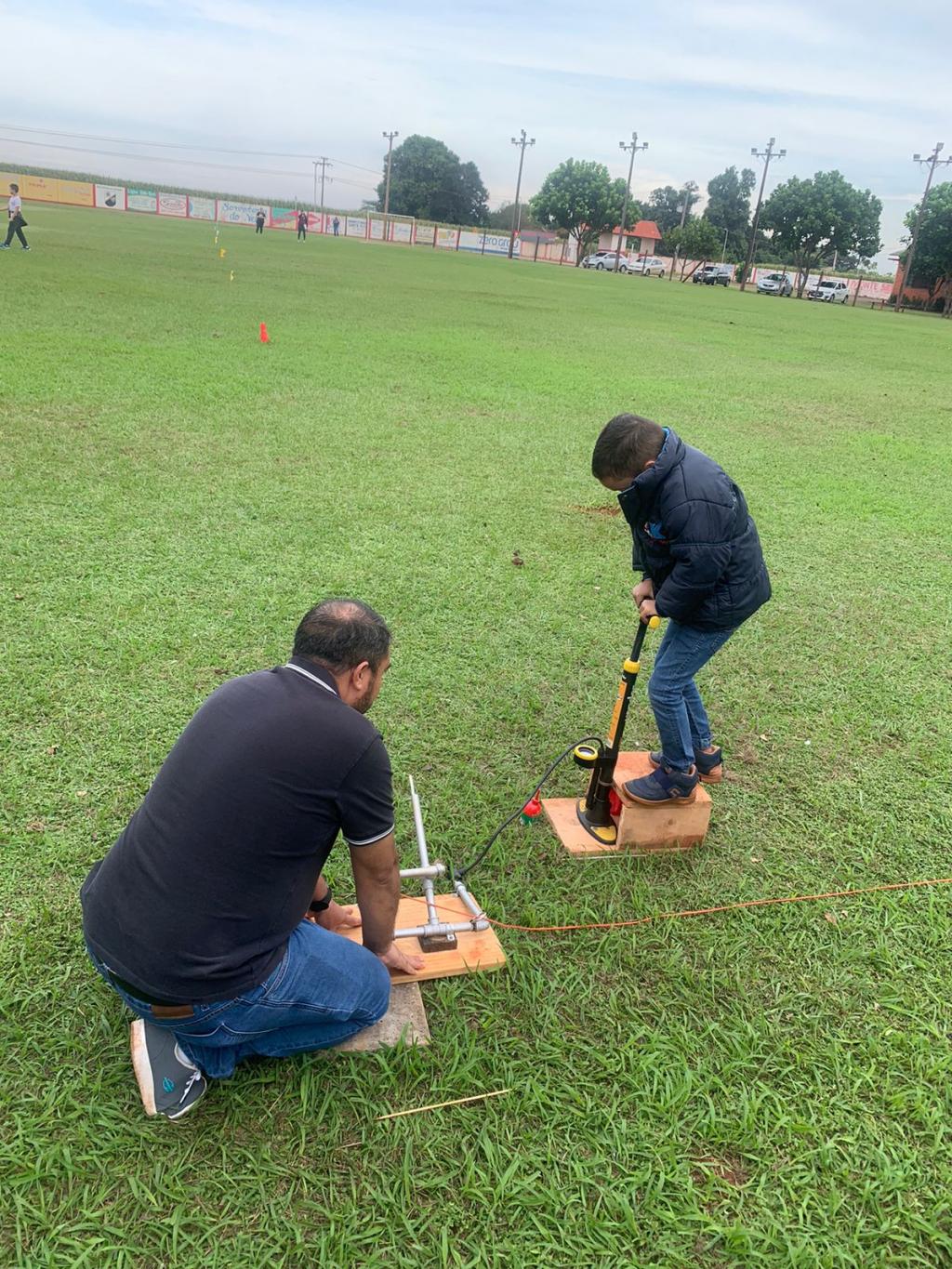 A confecção do foguete, bem como o lançador é de responsabilidade de cada família/aluno, a escola tem a função de acompanhar o lançamento, registrar e lançar os dados na plataforma.