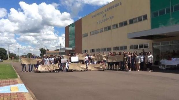 Os alunos de medicina da Universidade Federal do Paraná do campus de Toledo realizaram um protesto pacífico na tarde deste sábado (23), no Hospital Regional da cidade.