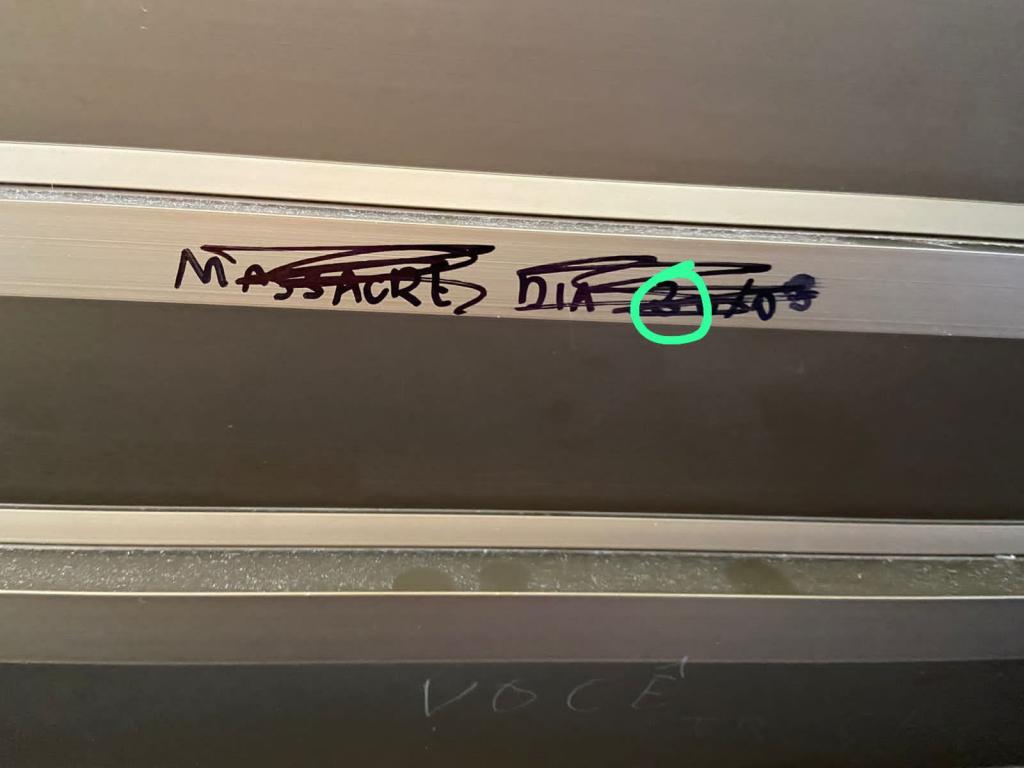 A mensagem escrita no banheiro da instituição faz uma ameaça "massacre neste dia 30/03". O texto foi escrito em uma porta do banheiro e foi riscado com caneta preta por cima.