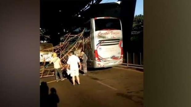 Um ônibus do Uruguai foi o mais atingido. Ainda não há informações de feridos.