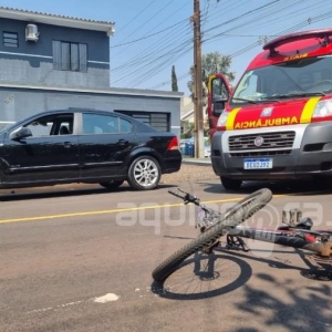 Por volta das 11h20 desta terça-feira (26), um ciclista ficou gravemente ferido em um acidente de trânsito no cruzamento das ruas São Paulo e Presidente Costa e Silva, em Marechal Cândido Rondon.