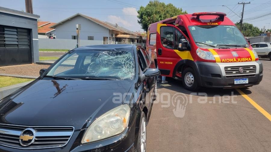 O homem de 39 anos sofreu violenta queda após colidir contra um veículo Vectra. O carro seguia pela rua São Paulo sentido Centro/Avenida Irio Welp.