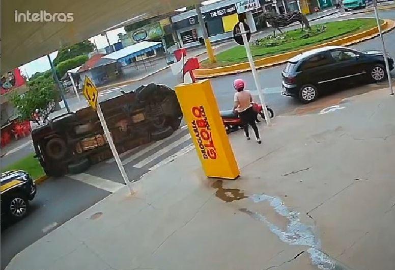 O tombamento provocou outro incidente entre o Gol e uma moto Biz. A piloto da motocicleta só não foi atingida porque pulou do veículo momentos antes.