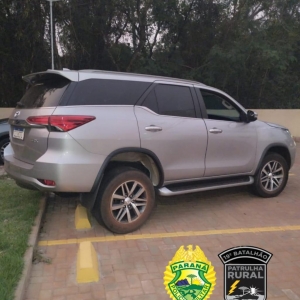 Uma equipe da Patrulha Rural rondonense trafegava nas proximidades do município de Mercedes, após receber denúncia de um furto de uma Toyota SW4 em Cascavel.