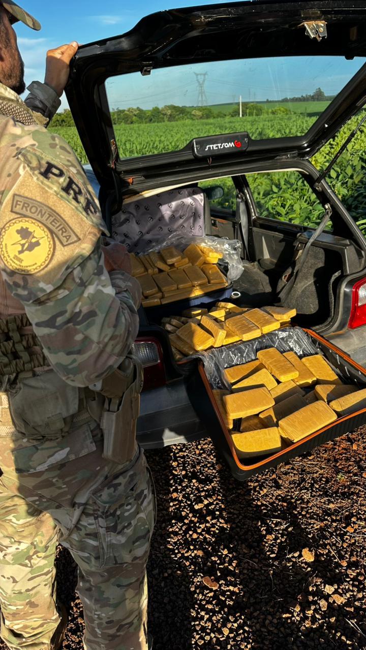 Na vistoria do automóvel, os policiais encontraram duas malas carregadas com maconha, totalizando cerca de 90 quilos do entorpecente. Diante da situação, o veículo e a droga foram apreendidos e encaminhados à Delegacia da Polícia Federal de Cascavel.