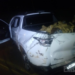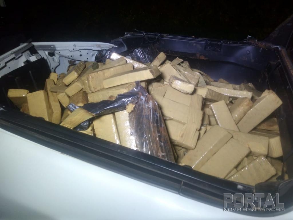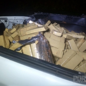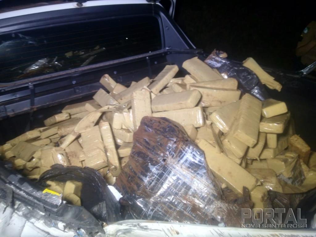O veículo ao capotar espalhou diversos tabletes de maconha por um raio de aproximadamente 200 metros da rodovia, motivo pelo qual o indivíduo empreendeu fuga. Posteriormente consultado o chassi e placas do veículo, constatou-se ser produto de roubo na Cidade de Rio de Janeiro na data de 31/10/2018.