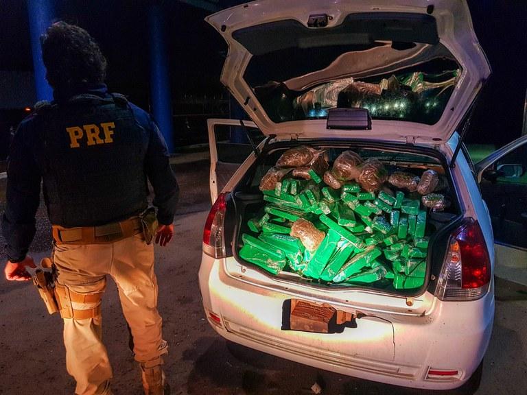 Na vistoria no carro, os policiais encontraram 203 tabletes de maconha, dispostos no interior dos bancos, painel e nas laterais, além do assoalho, totalizando 137 quilos da droga. Além disso, encontraram 5,6 quilos de skunk, a versão mais potente da droga.