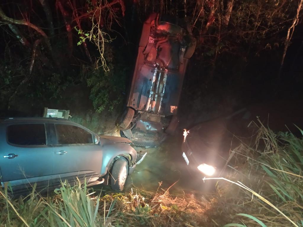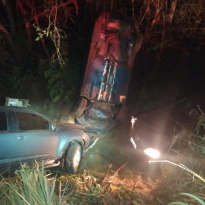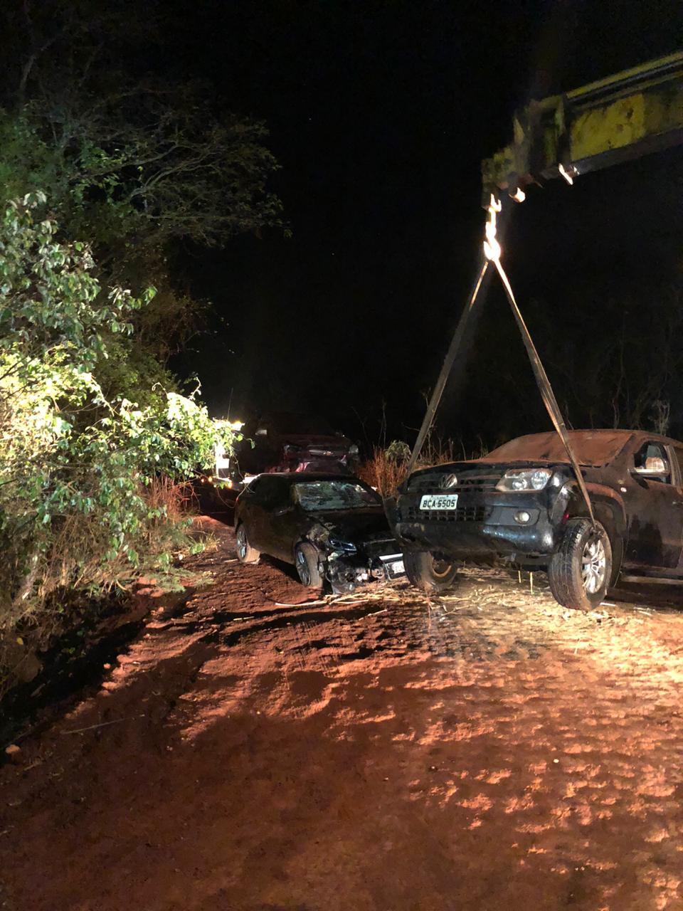 Os veículos estavam carregados com aproximadamente 1300 pacotes de cigarros oriundos do paraguai e durante acompanhamento tático acabaram perdendo o controle e caindo em um riacho naquela localidade.