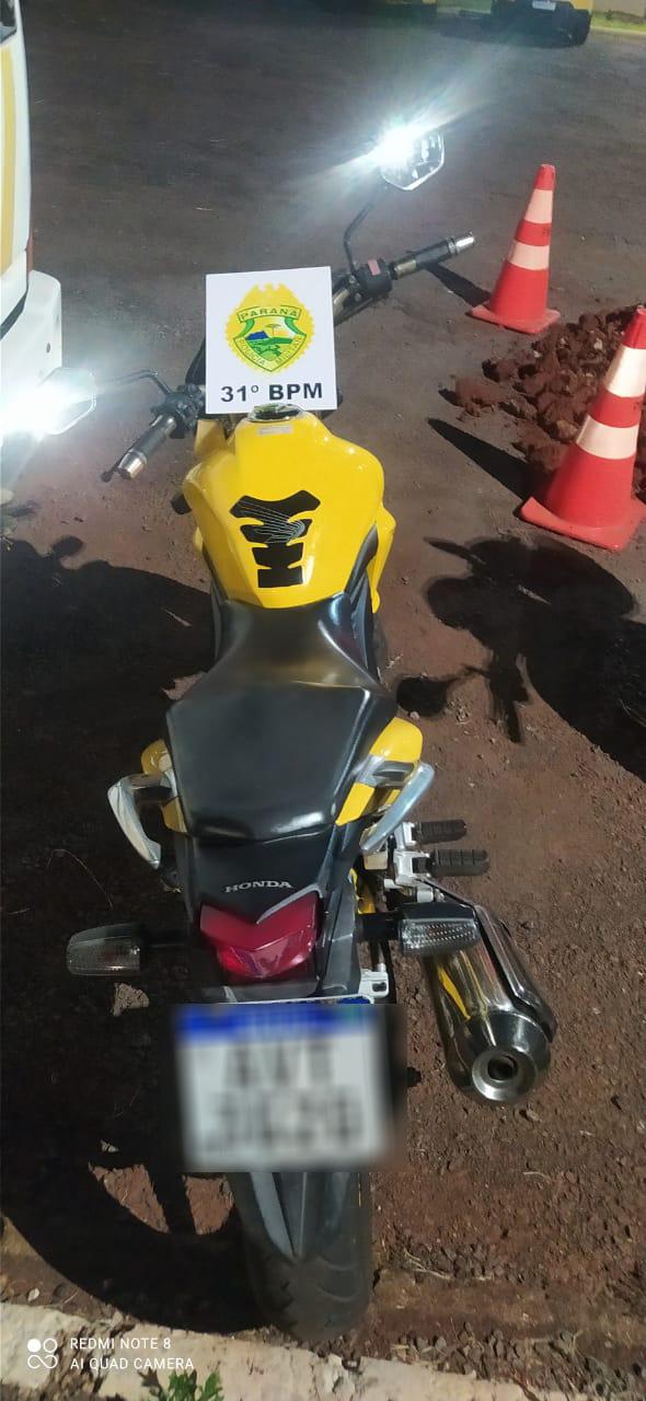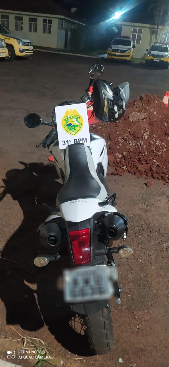 O fato aconteceu na Avenida Presidente Kennedy, no Jardim Itália em Palotina, sendo que as 23h30, A RPA Palotina recebeu informação de que dois homens em uma motocicleta XT 660 branca, de posse de uma arma de fogo do tipo pistola, realizaram um assalto levando uma motocicleta Honda/CB 300r amarela e um celular.