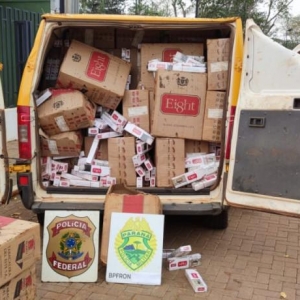 A eficiente ação integrada entre POLÍCIA FEDERAL e BPFRON (PMPR), que apreendeu 01 (uma) Van e cerca de 150 (cem) caixas de cigarro paraguaio trouxe um prejuízo estimado em R$ 450.000,00 (quatrocentos e cinquenta mil reais) ao crime organizado.