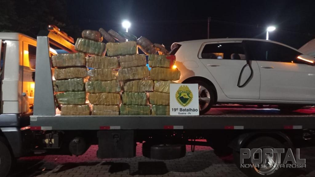 Populares informaram que o condutor seria uma pessoa magra, e que teria deixado o veículo e pulado alguns muros acessando região de mato, ao fazer a checagem do veículo, pela placa física, não foram constatadas irregularidades, mas pelo chassi constatou tratar-se de produto de roubo na cidade de Curitiba, e que a placa verdadeira seria outra, diante dos fatos, foi solicitado serviço de guincho, o veículo com a droga fora encaminhado a Delegacia de Polícia Federal.