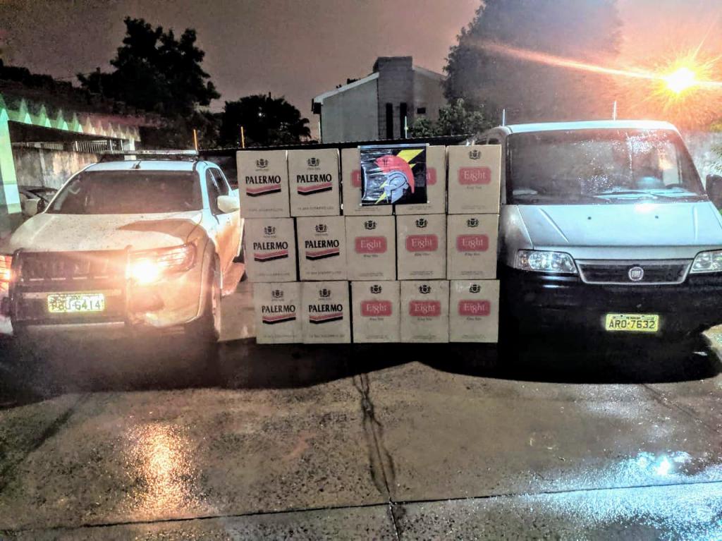 Também foi apreendido um revólver calibre .38 com numeração raspada, com cinco munições, sendo quatro deflagradas e uma intacta. Na van com a placa de Sarandi (PR), havia cinquenta caixas de cigarro, totalizando uma quantia de 2,5 mil cigarros.