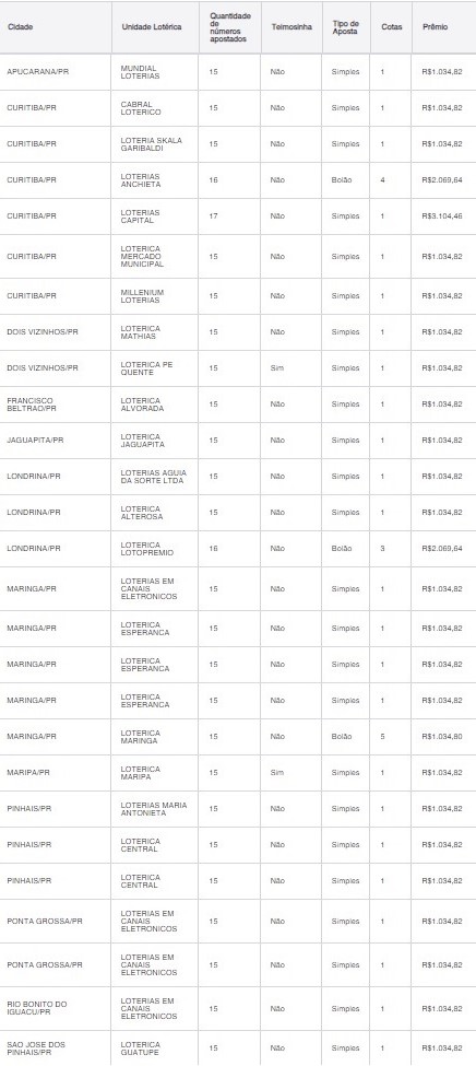 Confira as apostas ganhadoras do Paraná com 14 acertos, dentre elas na cidade de Maripá: