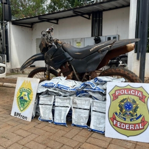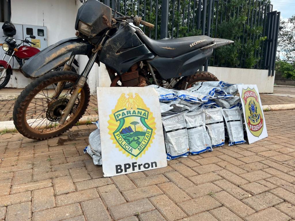 Uma ação integrada resultou na apreensão de cerca de 70 quilos de agrotóxicos de origem paraguaia na tarde de terça-feira (02), na zona rural de Guaíra. O material era levado em uma motocicleta Honda Tornado preta, sem placas, que tentou fugir ao perceber a aproximação da equipe.