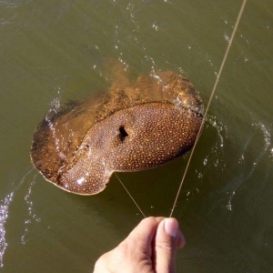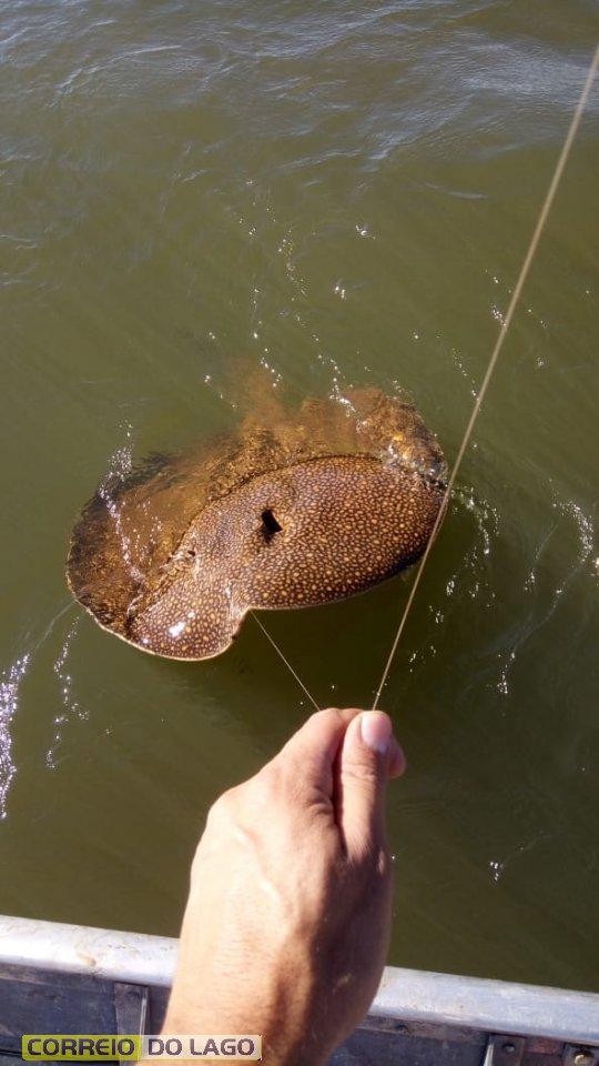 A arraia foi fisgada na região de Santa Helena Velha, em uma profundidade de 25 a 30 metros e o anzol estava iscado com Morenita.