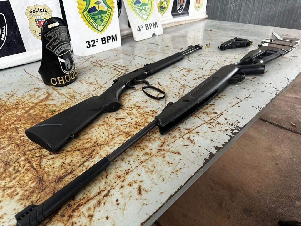 Um assalto em uma fazenda na área rural de Mandaguaçu, no Norte Central do Paraná, terminou com seis presos, um suspeito morto e armas apreendidas em uma operação das forças de segurança.