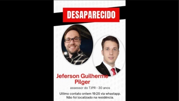Jeferson Guilherme Pilger, residente na cidade de Colombo, assessor do Tribunal de Justiça do Paraná e filho de moradores de Santa Helena, está desaparecido desde sábado (14).