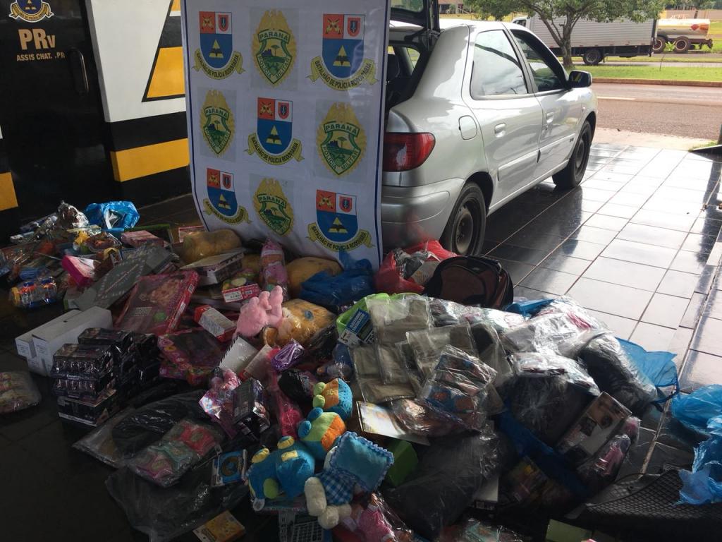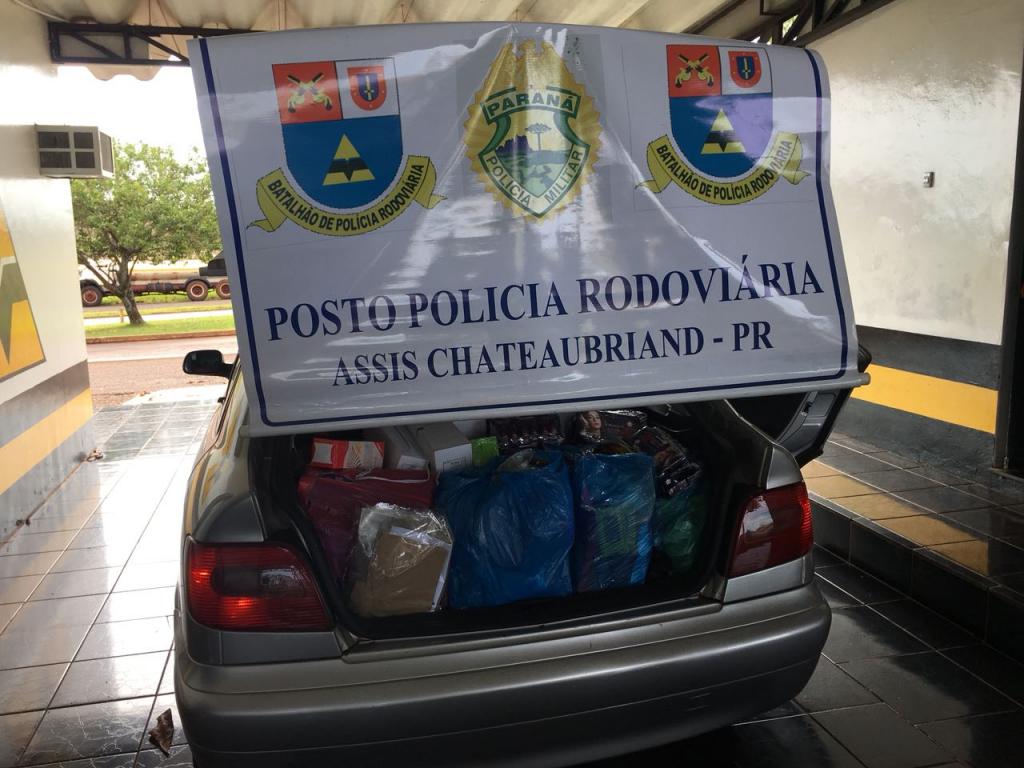 Na manhã desta sexta-feira (02), em operação de fiscalização na rodovia estadual PR-239, foi realizado abordagem ao automóvel Citroen Xsara GLX 1.6 placas DEC-4112 de Foz do Iguaçu, conduzido por uma senhora 59 anos, tendo como seu passageiro o filho da condutora, após fornecer a CNH para verificação, foi constatado que no interior do veículo haviam mercadorias (brinquedos, maquiagens, vestuário), onde a condutora não apresentou a devida declaração, relatando que saiu de Foz com destino a Umuarama onde faria a entrega das mercadorias. Diante dos fatos o veículo a mercadoria e as duas pessoas foram encaminhados ao Posto de Polícia Rodoviária Estadual de Assis Chateaubriand para confecção de documentos. Posteriormente o veículo e a mercadoria contrabandeada foram encaminhados para Delegacia da Receita Federal de Cascavel.