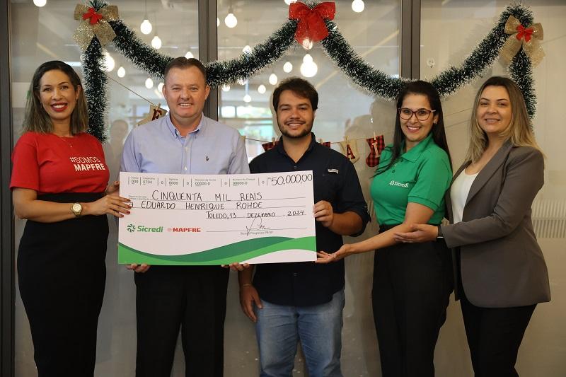 Em reta final do ano de 2024, o associado da Sicredi Progresso PR/SP, Eduardo Henrique Rohde, foi o ganhador do sorteio mensal de R$ 50 mil do Seguro de Vida Sicredi - em parceria com a operadora de seguros Mapfre.