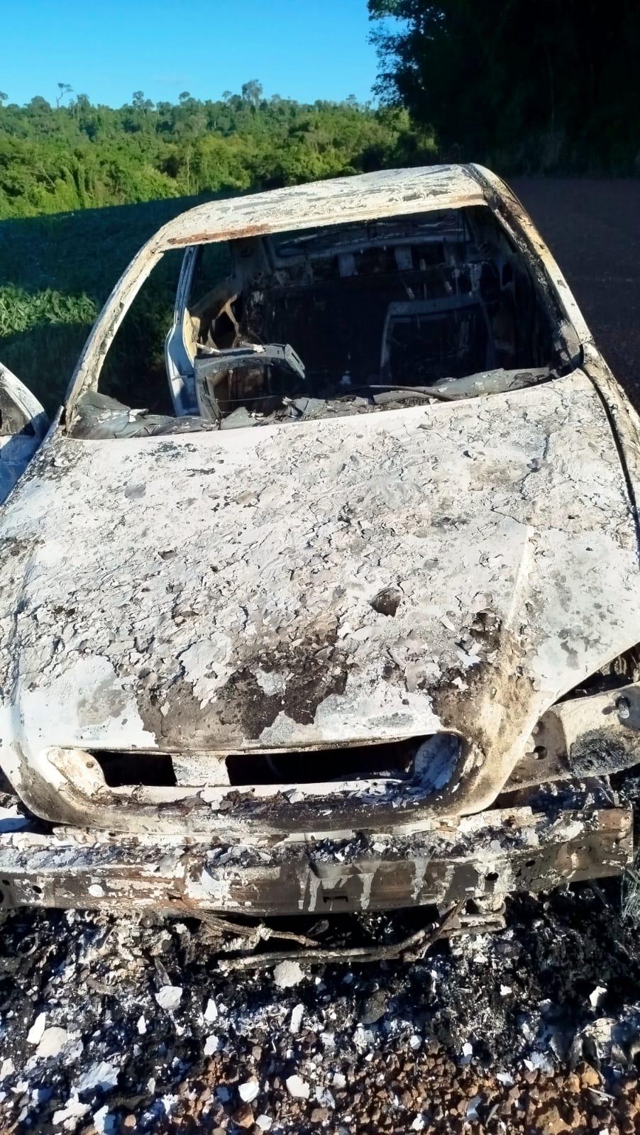 Um Chevrolet Astra foi encontrado completamente destruído pelo fogo no início da manhã desta quinta-feira (18), às margens de uma estrada rural que liga o distrito de Planalto do Oeste ao município de Mercedes, no Oeste do Paraná.
