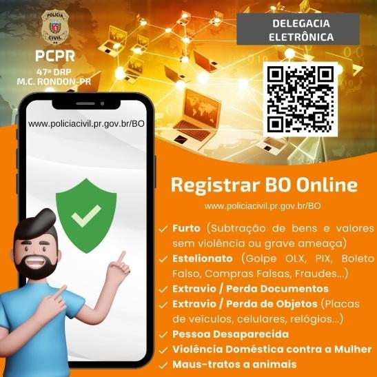 No Paraná, é possível registrar um boletim de ocorrência pela internet, sendo que a Polícia Civil disponibiliza uma plataforma digital, facilitando o atendimento à população. A ferramenta, conhecida como Delegacia Eletrônica, pode ser acessada pelo site www.policiacivil.pr.gov.br/BO .
