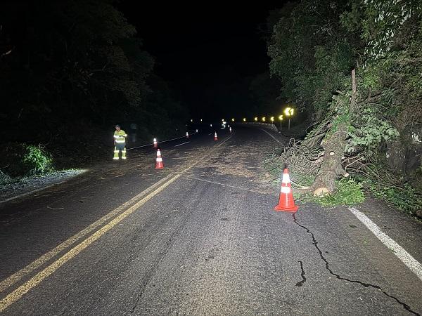 Na noite de domingo (3), a Polícia Rodoviária Federal (PRF) atuou para desobstruir a rodovia BR 277, no Km 480, município de Nova Laranjas, após uma árvore ter sido intencionalmente derrubada com o uso de uma motosserra, bloqueando ambos os sentidos da via. Essa ação visou garantir a segurança dos motoristas que transitavam pela região.
