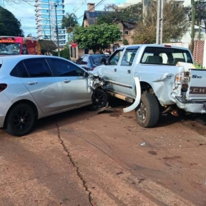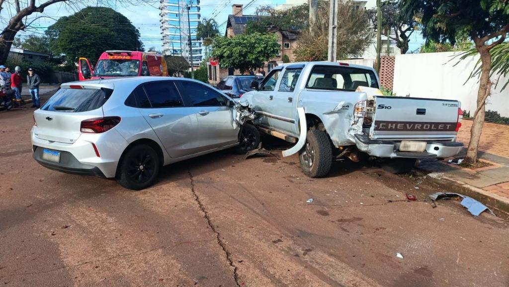 Um acidente de trânsito do tipo atropelamento seguido de colisão contra veículos estacionados aconteceu nesta manhã de terça-feira (5) na Rua Bonfim, região central de Toledo. A ocorrência envolveu um Chevrolet Onix, uma caminhonete Chevrolet S10 e um Toyota Corolla.