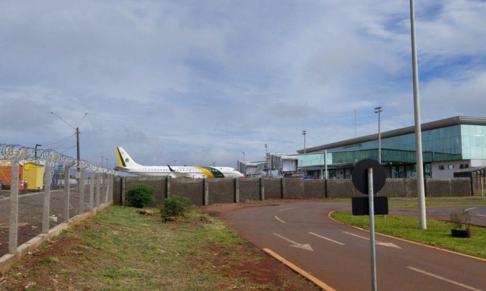 Na tarde deste domingo (31), um avião Embraer 190 da Força Aérea Brasileira chegou ao aeroporto de Cascavel.