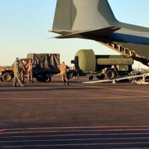 A aeronave de modelo C130M-2476 do Exército Brasileiro trouxe materiais táticos para a base de Catanduvas.