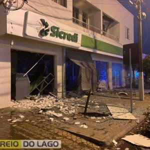 Bandidos fortemente armados detonaram o estabelecimento, deixando o local destruído.